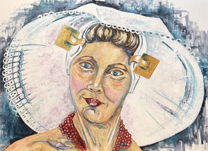 2023Portret van buurvrouw Branca. Acrylverf met potlood. In particulier bezit.
